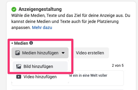 Klicke auf „Medium hinzufügen“ und dann auf „Bild hinzufügen„