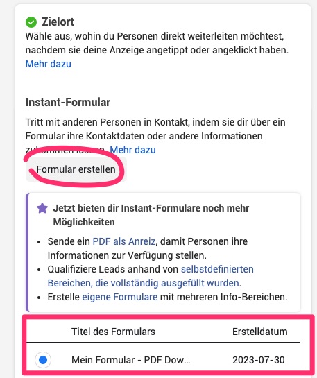 - Leadformular (Instant-Formular) erstellst