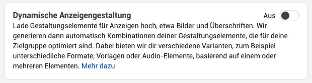 Advantage-Detailtargeting – gerne kannst du den Wert auf „Ja“ setze, damit Meta noch mehr Leads findet.