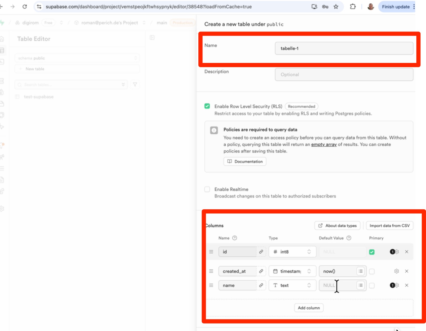 - Zurück in Supabase wechseln – Eintrag erscheint sofort!